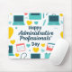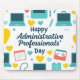 Playful graphic pattern bursting with office icons—laptops, calendars, hearts, and more—arranged in a celebratory layout centered on bold script "Administrative Professionals Day." Cheerful teal and yellow tones match trending Instagram stories for vibrant admin appreciation. This energetic design honors the daily wins of administrative pros—perfect for fun prints, stickers, wrapping, or gifts that pop with positivity and thanks.