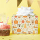 Dieses Design zeigt ein reizvolles fallthematisches Muster mit gemütlichen Herbstelementen. Das Design umfasst Abbildungen von Kürbissen, Kürbiskuchenscheiben, überzogen mit Sahne, warme Herbstgetränke in Go-Bechern und Butternut Squash. Dazwischen gibt es Zimt, Sternanis, Grünpflanzen, Herbstblätter, Eicheln und kleine Beeren, alles Set mit einem weichen Cremeuntergrund. Das Muster strahlt eine warme und einladende Atmosphäre aus, perfekt um die Aromen und Farben der Herbstsaison zu feiern.