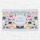 Mit allen Arten von Dschungel, Safari, Zootieren, Haustieren, Vögeln und wild lebenden Tieren. Ein Monster und ein Dinosaurier hätten vielleicht auch dort hineingeschnappt. Ideal für einen lustigen Tierfreund mit der Babydusche. Ändern Sie den Text, um ihn zu personalisieren. Originelle Kunst von Nic Squirrell.