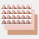 Trendy rosa und beige Geschenkpapier. Drei Blätter mit verschiedenen Drucken. Eine ist ein niedlicher Lebkuchenmann mit hübschen rosa Geschenken, die andere ist passend rosa und die dritte ist passend zu braun. Fun Pink Gingerbrot Packpapier Blätter