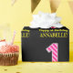Dieses lustige, zum Geburtstag gedrehte Packpapier-Design hat eine große Zahl "1", mit einem hellrosa und dunkelrosa Streifen Muster. Es enthält auch die Meldung "Happy 1st Birthday", und einen bearbeitbaren Namen. Der Hintergrund ist schwarz. Geburtstagsthematische Umhüllungspapiere wie diese können verwendet werden, wenn Sie ein Geschenk oder Geschenk zur Feier des ersten Geburtstages von jemandem geben. [~Z0000376]
