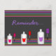 Das Fun Design ist perfekt für Nagelstudio oder Friseur-Termin Erinnerung Karten! Das Design weist einen dunkelgrauen Hintergrund mit Streifen in hübschen Rosa-, lila-, Blau- und Gelbtönen auf. Die Hauptgrafik umfasst drei Flaschen Nagellack ist unterschiedlich groß und in heißen Rosa, Rot und lila. Es gibt Text im lila Skript-Schriftart, der "Erinnerung..." sagt, aber dieser Text kann von Ihnen angepasst werden. Die Rückseite der Erinnerung-Postkarte enthält alle vollständig anpassbaren Texte. Diese niedliche Fun Polnischer Nagelfisch oder Friseur Erinnerung Postkarten sind die perfekte Wahl für Ihr Nagel oder Haar Geschäft.