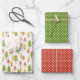 Fun Red Green Yellow Abstrakt Pine Tree Muster Geschenkpapier Set