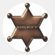Fun Geburtstagsfeier Aufkleber in Weiß mit Grafik eines Bronze aussehenden Sheriffs Abzeichen, das Sheriff liest, in der Mitte. Ideal als Umschlag Aufkleber für Ihre Western Party Einladungen oder als Gastgeschenke für Kinder.
