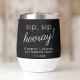 Gönnen Sie sich und Ihren Hochzeitsgästen einen Hochzeitstoast und ein einzigartiges Souvenirgeschenk mit diesem personalisierten, schwarzen Thermalwäscher mit "Sip Sip Hooray" und Ihren Namen "Got Verheiratet Heute" in weißer Typografie.