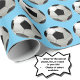 Fun Soccer Ball Muster auf Pulverblau Geschenkpapier