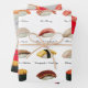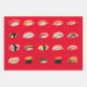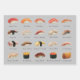 Umschlagpapier, das das ganze Jahr über verwendet werden kann. Die Illustration umfasst 20 verschiedene Sushi-Typen auf weißem, grauem und rotem Hintergrund.