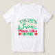 Ein festliches T - Shirt-Design mit dem spielerischen Satz über Zuhause und Schnee, umgeben von Weihnachtsbäumen und fröhlichen Dekorationen, perfekt für Ferien-Ansammlungen und Feiern.