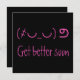 Brighten Sie jemandem den Tag mit dieser spielerischen Unicode-Karte "bald besser werden" mit einem lebendigen neonrosa traurigen Gesicht und lustigen handgeschriebenen Stil-Nachricht auf einem soliden schwarzen Hintergrund. Dieses sonderbare Design verbindet moderne geeky Textkunst mit kühnen Farben und macht es zu einem unvergesslichen und aufregenden Weg, gute Wünsche zu senden. Passen Sie die Botschaft und die Farbtöne einfach an, um eine fröhliche und personalisierte Karte zu erstellen, die sich perfekt eignet, um Freunde oder Familie mit einer Touch von Spaß und Stil zu ermutigen.