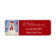 Dieses Adressetikett zeigt einen lustigen Schneemann mit einem roten Hut, Fäusten und Schal, stehend im fallenden Schnee.