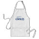 Eine weiße Schürze aus Baumwolle mit dem walisischen Wort "cwtch", was "cuddle" oder "hug" in einem keltischen Skript bedeutet, gefüllt mit einem hübschen Muster rosa Blume auf einem Navy Blue Hintergrund.