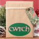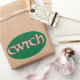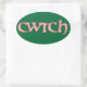 Verschicken Sie ein walisisches 'cwtch' an Ihre Lieben! Ein Blatt ovaler Aufkleber mit dem walisischen Wort "cwtch", was "kuddle" oder "hug" in einem keltischen Skript bedeutet, gefüllt mit einem hübschen Clematis-Muster auf einem tiefen grünen Hintergrund, das Sie ändern können, wenn Sie möchten.