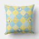 Un amusant Coussin ou Cushion "Wales Forever", avec un design en diagonale Faux Patchwork de motifs et de motifs de moutons en Blues et Jaunes, en équipe avec la coordination Check Ginghams et Pots Polkas.