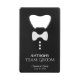 Cet ouvre-bouteille amusant est conçu comme un cadeau pour les Groomsmen, la famille, ou votre Meilleur Homme. Dispose d'un design amusant avec une cravate blanche et trois boutons sur un arrière - plan noir ressemblant à un smoking. Le texte dit "Team Groom" avec une place pour son nom, les noms du couple mariage et la date du mariage. Grand merci cadeau ou faveur.