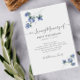 Carte à thème simple avec une couronne de fleurs botaniques bleues, le texte et les couleurs peuvent être personnalisés.