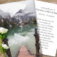 Notre carte de prière sereine et sincère est un hommage poignant pour honorer votre bien-aimé au milieu de la beauté tranquille des montagnes enneigées, d'un lac serein et d'un escalier descendant gracieusement au bord de l'eau. Cette scène pittoresque évoque un sentiment de paix, d'émerveillement et l'embrassement majestueux de la beauté immaculée de la nature. Conçu avec une attention minutieuse aux détails, chaque carte de prière offre solace et confort lors d'une perte profonde. Son design saisit l'essence de la tranquillité de la nature, vous invitant à trouver le réconfort dans la beauté sereine des montagnes enneigées et du lac tranquille tout en gardant sur des souvenirs chéris avec une foi inébranlable. À l'envers, il y a un espace sacré pour le verset que vous avez choisi, un message personnalisé d'amour et de souvenir. Qu'il s'agisse d'un passage réconfortant des Écritures ou d'un sentiment sincère, il sert de rappel poignant du lien durable que vous partagez avec votre être cher disparu. Avec les mots "In Loving Memory of", suivis de leur nom et de leurs dates, notre carte de prière devient un souvenir chéri, préservant leur mémoire pour les générations futures. Il transcende le simple papier, servant de lien tangible avec leur esprit, un phare d'espoir qui vous guide à travers des moments de tristesse. Au-delà de son allure esthétique, notre carte de prière revêt une signification profonde. C'est une source de force, un témoignage de l'héritage durable de votre être aimé, et un rappel que leur esprit vit dans le coeur de ceux qu'ils ont touchés. Choisir notre carte de prière est plus qu'honorer leur mémoire, c'est embrasser le pouvoir de guérison du souvenir. C'est un geste d'amour, un gage de confort, et un symbole du lien éternel qui transcende les limites terrestres. En quelques moments de perte, laissez notre Carte de Prière servir de sanctuaire tranquille, offrant le réconfort au milieu de la beauté des montagnes enneigées et du lac serein. Laissez la mémoire de votre bien-aimé briller au milieu d'un paysage majestueux et paisible.