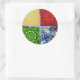 Dieses bunte zusammengesetzte Bild repräsentiert die fünf Elemente der Feng Shui-Weisheit - Holz, Feuer, Erde, Metall (Hintergrundbild) und Wasser