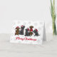 Fünf Labradors Weihnachtskarte für Labrador Fans!! Sehr niedliches Labrador Retriever Cartoon Design mit fünf Labradoren, die zu Weihnachten mit Ornamenten und Weihnachtsmannmützen gewartet werden. Schokolade Labradors und Black Labradors. So ein schöner Moment in der Urlaubssaison!
