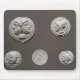 Römische fünf Münzen, die Janus, Jupiter, Mercury und Minerva, ANZEIGE 753 BC-476 gelegen beim Bibliotheque Nationale, Paris, Frankreich darstellen.