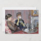 Fünf Tee der Uhr (1880) von Mary Cassatt porträtiert zwei elegant gekleidete Frauen, die einen Nachmittagstee in einer ruhigen, raffinierten Umgebung genießen. Das Gemälde unterstreicht Cassatts Liebe zum Detail und ihren geschickten Einsatz von Licht und Schatten, um ein Gefühl von Intimität und Realismus zu schaffen. Die Komposition erfasst die gesellschaftlichen Gepflogenheiten der Zeit und zeigt die Faszination des Künstlers für die Rolle der Frauen im häuslichen und sozialen Leben. Verwenden Sie die Entwurfstools, um einen benutzerdefinierten Text hinzuzufügen oder das Bild zu personalisieren.