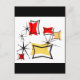 Kehren Sie mit diesem roten, schwarzen und weichen goldgelben Design in die 50er Jahre zurück. Sterne und andere Formen geben dieser Retro-Stimmung.