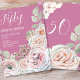 50. Geburtstag Einladung mit Watercolor Rose in hellrosa und grünen Farbtönen mit weißem Text. Passendes Design auf der Rückseite mit individualisierbarer Altersnummer. Eine klassische Einladung mit einem femininen Look. Passen Sie mit Ihrer Wahl von Alter, Text und Hintergrundfarbe auf Ihre spezielle Veranstaltung an.