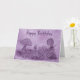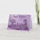 Pilze wachsen auf einer Wiese zusammen. Handgezeichnetes Design in lila Tinte. An der Vorderseite steht "Happy Birthday" und innen steht "Habe einen wunderbaren Geburtstag!"