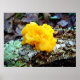 Fungi Tremella Mesenterica wächst neben Flechten an einem toten Ast