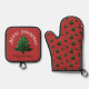 Funkelnd froher Weihnachtsbaum Individuelle Name Ofenhandschuh & Topflappen-Set