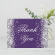 Erstellen Sie Ihren eigenen eleganten Geburtstag dank Karten. Imitate glänzen silberne Glitzer-Kanten mit Glitzern auf einem soliden violetten Hintergrund. Passen Sie die dunkle lila Farbe an, wenn Sie Ihre besondere Feier abstimmen möchten. Alle glänzenden silbrigen funkelnd Effekte in diesem modernen mädchenhaften Design werden mit digitaler Grafik erstellt. Löschen Sie die digitale Kunst auf der Rückseite, wenn Sie mehr Platz für Ihre benutzerdefinierte Textnachricht benötigen. Ein kreatives Design für ihre Meilenstein Geburtstagsfeier.