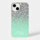 Funkelnd Imitate Silver Glitzer und Minze Green Om iPhone 14 Hülle