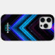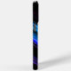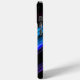 Funkelnd Metall Neon aqua lila Galaxie Zickzack Monogram iPhone 15 Case. Personalisieren Sie Ihre Eingabe und Ihren Namen. Abstrakte funkelnd metallische schwarz-blaue Galaxiestreifen sorgen für digitales Design. Keine Glitzern!