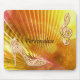 Funkelnd orange Musiknote u. Stilett-Ferse Mousepad
