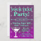 Funkelnd Party Einladungen mit Cocktail-Glas | Individuelle Einladungen für Gäste. Personalisierbarer Ankündigungstext und Hintergrundfarbe. Cocktail Glas Design mit glänzenden Sternfunkeln. Coole Idee Hochzeitstag, Geburtstag, Cocktail Party, Bachelorette etc. Türkisfarben und lila Farben können individuell angepasst werden.