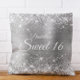 Fantastische süße 16 geistliche Glam werfen Kissen für Ihre Tochter. Die Vorderseite zeigt die sechzehn in einem puffigen Ballon Text Bild. Das Hintergrundbild ist mit einer gürtelgrauen, ombre gepinselten Metalfolie mit Imitaten silberfarbener Glitzer-Grafik ausgestattet. Auf der Rückseite können Sie den Stil, die Farbe und die Größe des Schriftartes nach Bedarf anpassen. Die luxuriösen Glitzern, Glitzer und Folie werden mit kreativen künstlerischen Elementen kreiert, die wie ein Foto gedruckt werden.