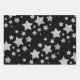 Funkelnd Silver Stars Weihnachtsmuster auf schwarz Geschenkpapier Set