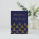 Personalisieren Sie den goldglänzenden Weihnachtsbaum auf blauem Hintergrund. Du musst wissen, dass du ein Foto bekommst!