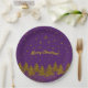 Funkelnd Weihnachtsbaum, Sterne, Schnee auf lila Pappteller