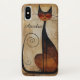 Funky, lustig, schöne Folk Art Katzendesign in reichen Erdtönen braun, creme und rost. Ideal für Katzenliebhaber und Tierliebhaber, die Originalität mögen. Anpassbarer Name. Kunst der AI