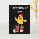 Albernes, lustiges, tanzendes Gelbhühnchen mit den roten Spitzen Tennisschuhen ist ein lustiges originelles Kunstdesign, das ein Lächeln bringen wird.