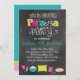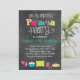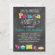 Diese farbenfrohe Pjama-Party Einladung eignet sich perfekt für ein kleines Mädchen, ein Teenager oder ein Paar zwischen Pajama, einem Schlittenhund oder einem Slumber-Party. Dieses Design verfügt über einen Chalkboard-Hintergrund mit bunten Musterbriefen, einem Kissen, Pizza, Popcorn, Ipod, Nagellack und Lippenstift-Grafik.