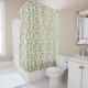 Wenn Sie Ihr Bad aufheitern möchten, wird Ihnen dieser lustige Duschvorhang aus der Mitte des Jahrhunderts dabei helfen! Dieses Design ist in abstrakten Formen und Linien in den Farben Türkisblau, Avocado-Grün, Orange, Bräune, Blau und Schwarz gehalten... und wirkt vor der Badewanne mit Fab.