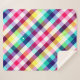Eine mittelgroße Sherpa-Decke mit farbenfrohen karierten Mustern in Regenbogenfarben.