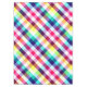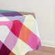 Eine 60"x84" Tischdecke mit farbenfrohen karierten Mustern in Regenbogenfarben.