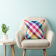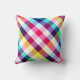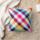Ein 16" x16" Kissen mit farbenfrohen karierten Mustern in Regenbogenfarben.