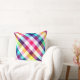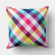 Ein 20" x 20" Kissen mit farbenfrohen karierten Mustern in Regenbogenfarben.