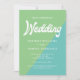 Diese Retro-Grün-, Blau- und Weißblock-Hochzeitseinladung ist einzigartig und wird Ihre Gäste für eine lustige Feier mit Ihnen begeistern.