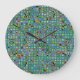 Funky Turquoise Textured Mosaic Tiles Pattern Große Wanduhr