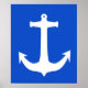 Funky White Anchor A3 Minimalistisches Poster. Der Anker hat eine schwarze Innenkontur. Eine großartige Wohngestaltung oder ein Geschenk.