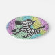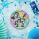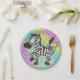 Niedliches Zebra-Prancing an einem farbenfrohen, lustigen und schwungvollen Hintergrund vorbei! Dieses Zebra hat Spaß und wird Sie sicherlich zum Lächeln bringen!